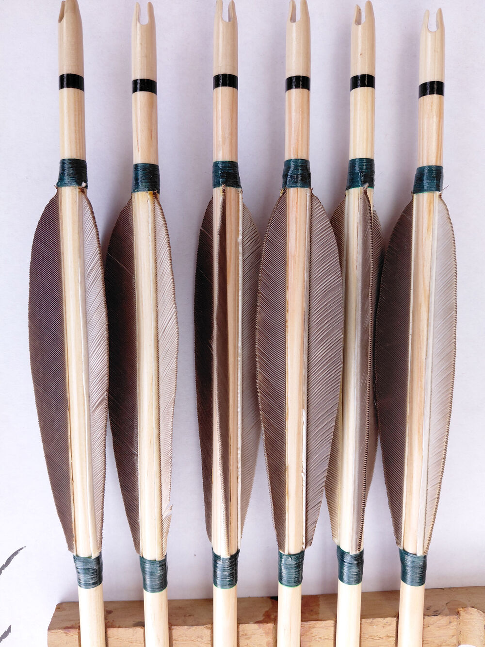 Fletchings: 5" low-profile parabolic, Eastern-style, wrapped mounting, natural wild-turkey feathers