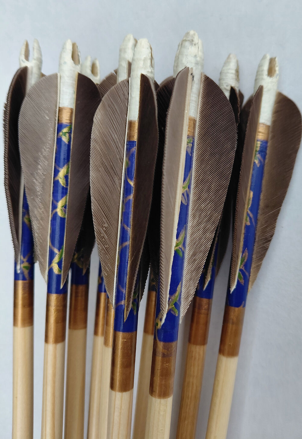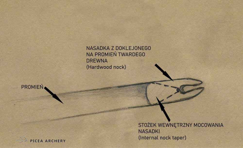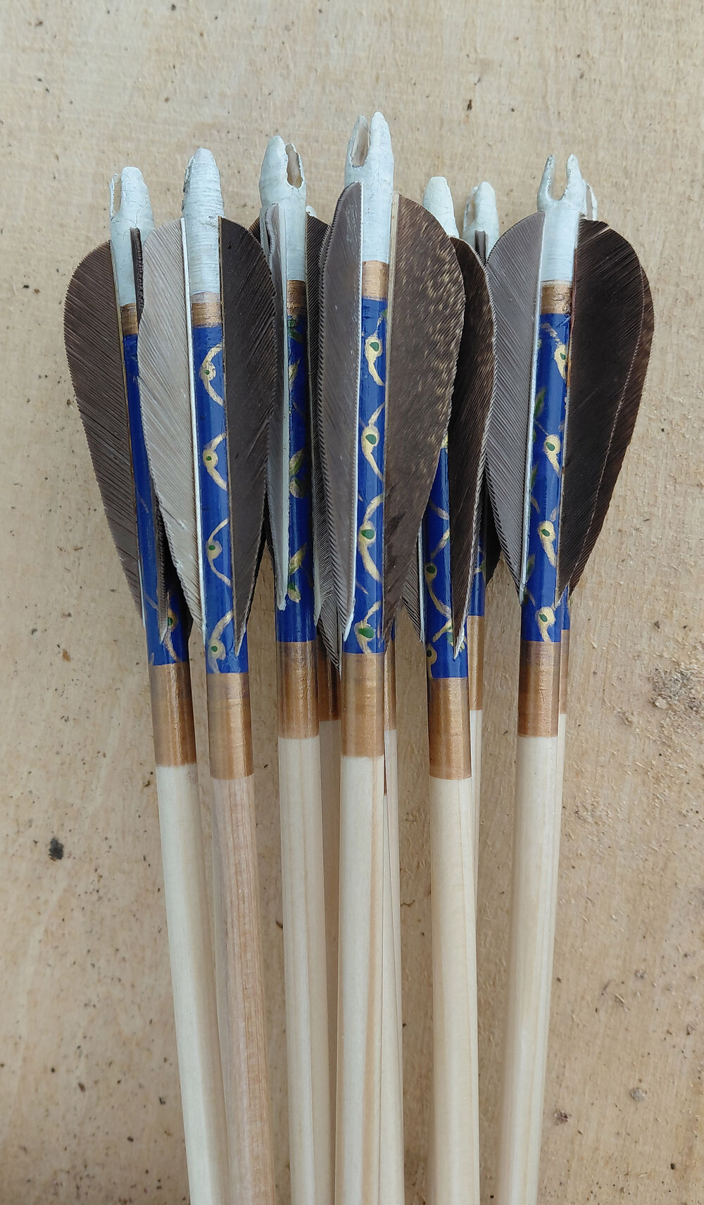 Fletching – natural turkey feathers, shifted toward the rear of the arrow, 3.5". The maximum rearward offset is historically correct for the Turkish style; it allows the use of a zekier and at the same time improves arrow stabilization after release.